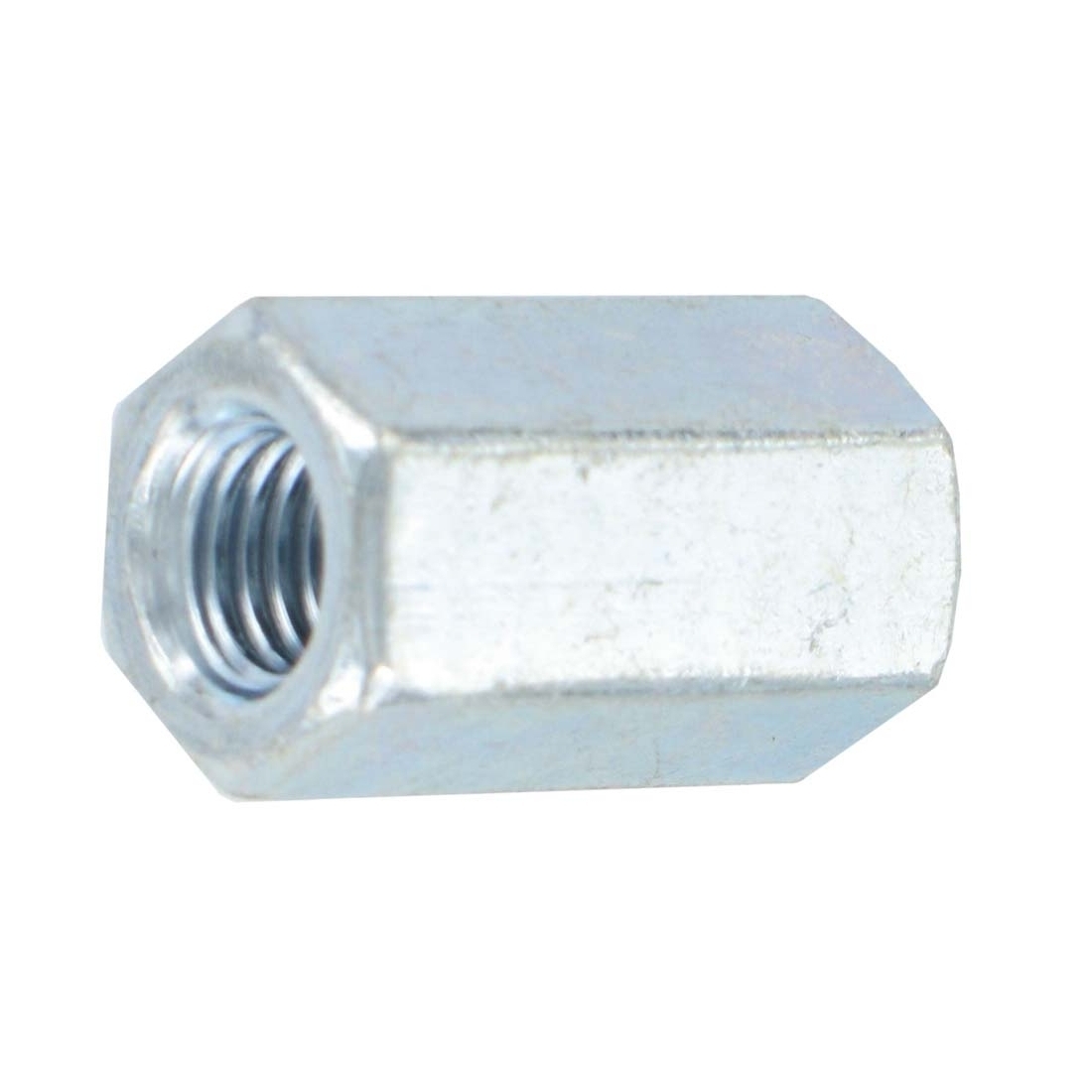 Features a continuous thread that can accommodate rods from either end. The hexagonal shape means it can be manipulated with appropriate spanners to tighten and loosen as needed.