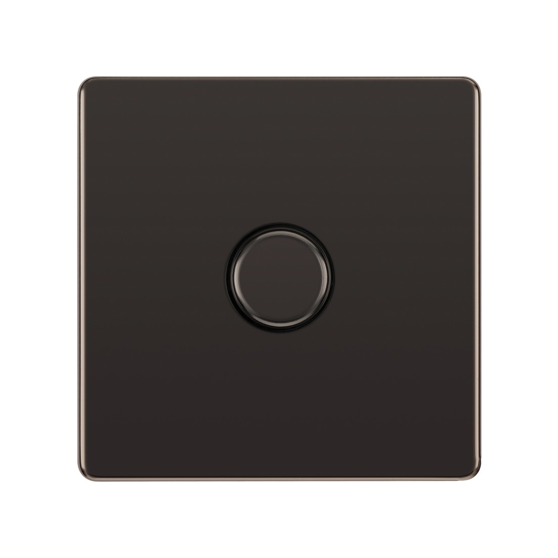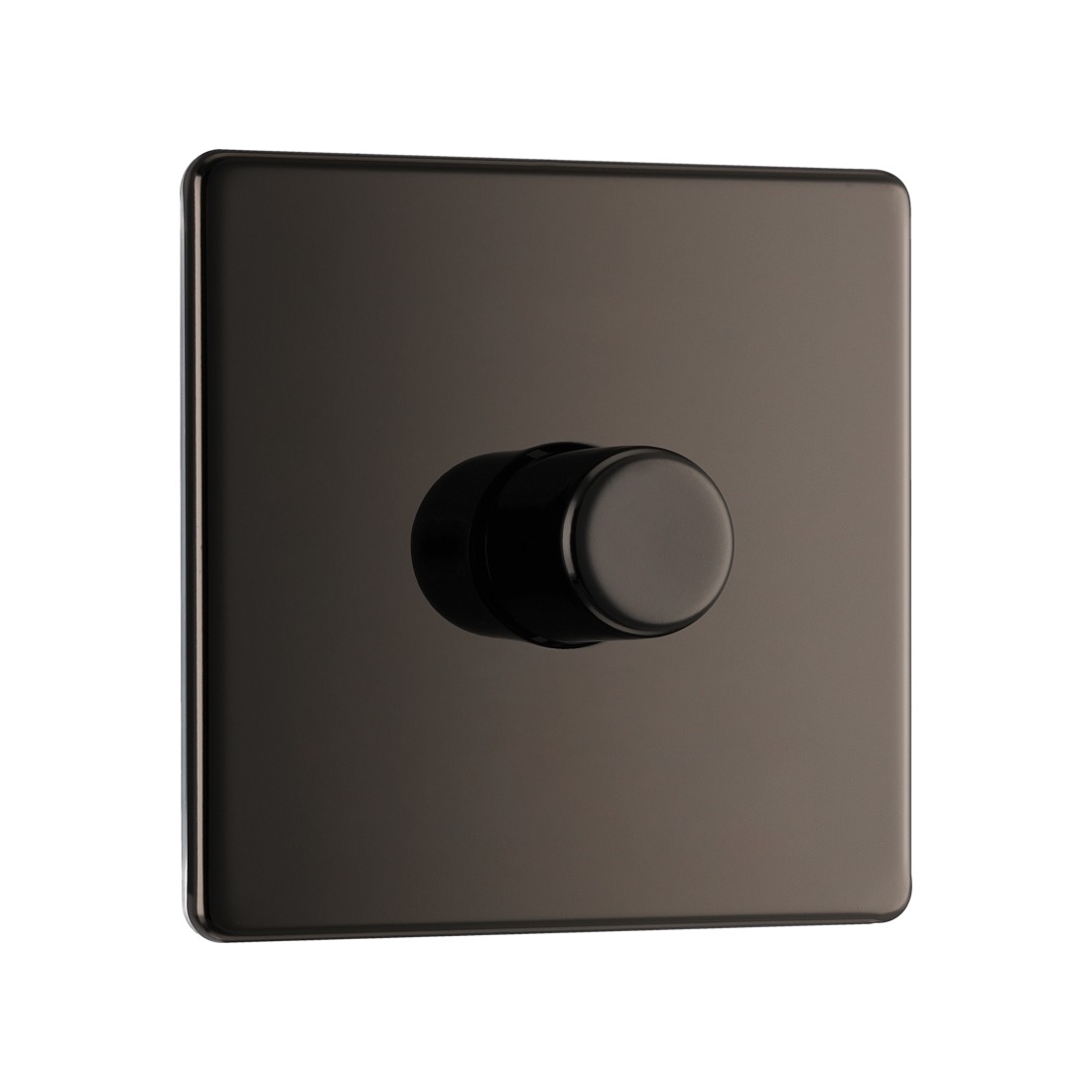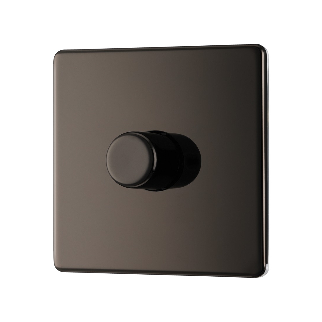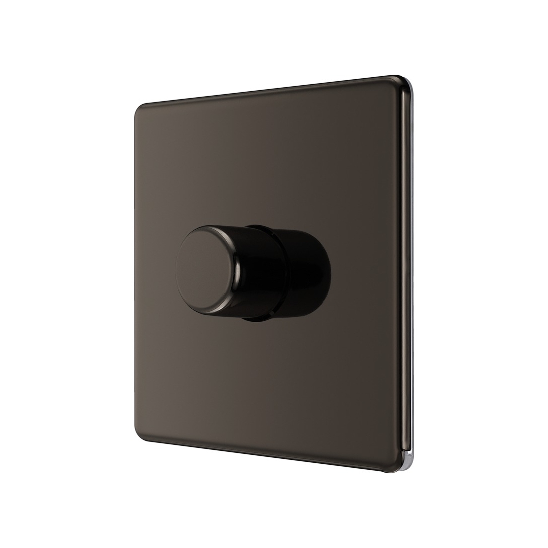 BG Electrical FBN81 Nexus Flatplate Black Nickel Screwless 1 Gang 2 Way Push Trailing Edge Dimmer Switch - Suitable For LED Lighting 200W