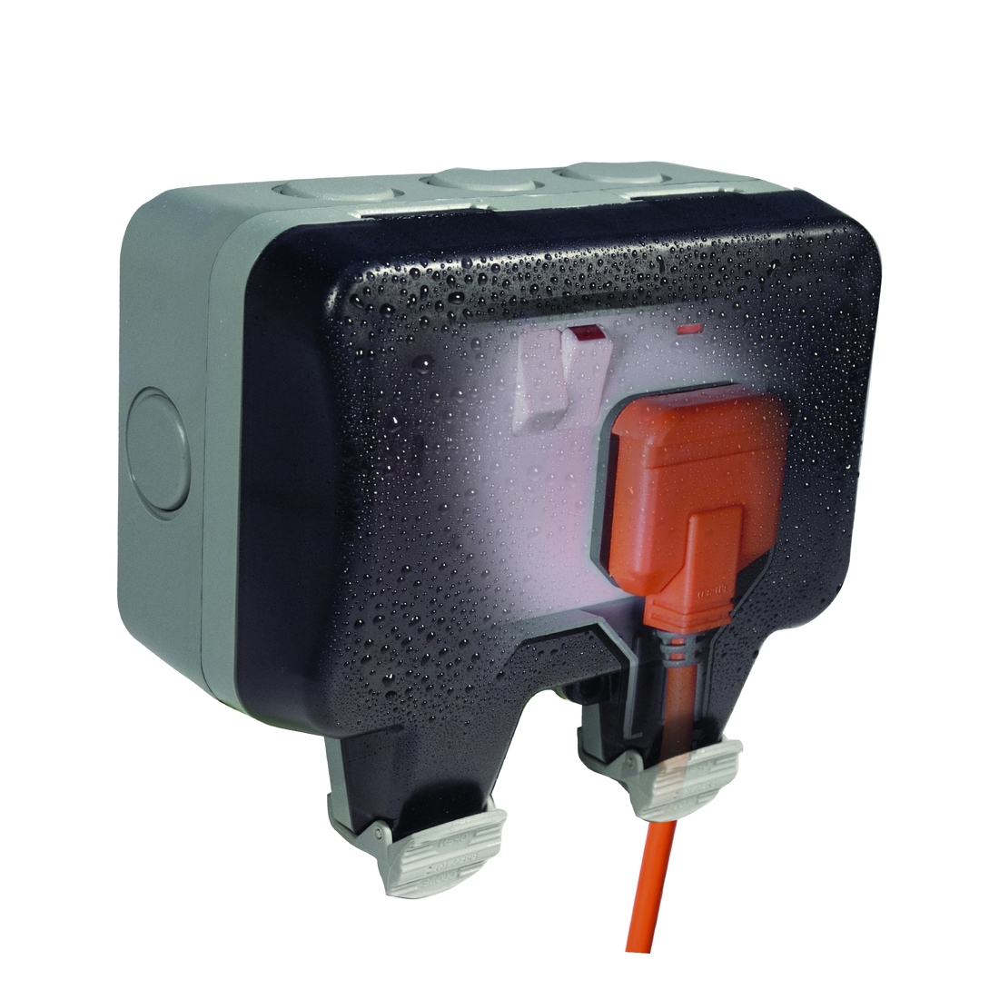 - Outdoor, all weather, waterproof, safe plug socket enclosure
