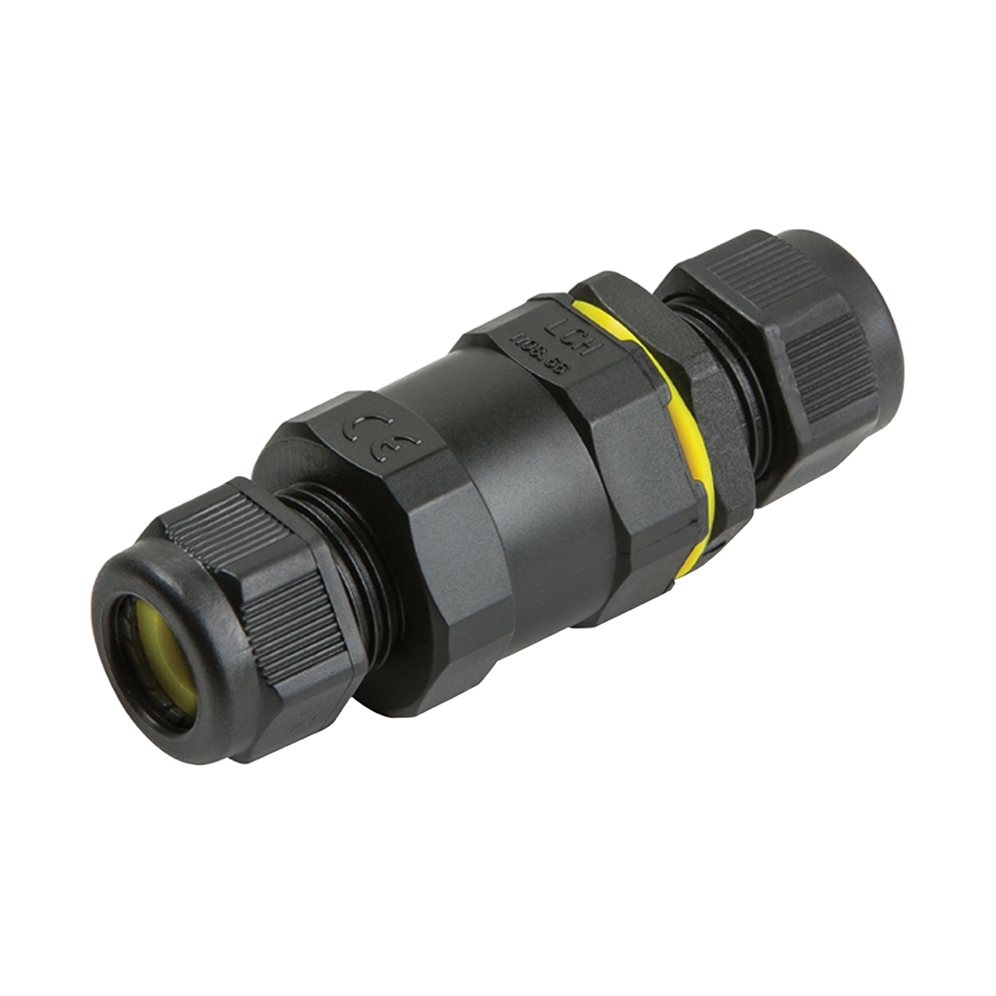 The Knightsbridge JB002 is a black 3-pole IP68 2-way in-line cable connector for repairing or extending outdoor H07RNF 3G 0.75mm² - 4.0mm² cable.