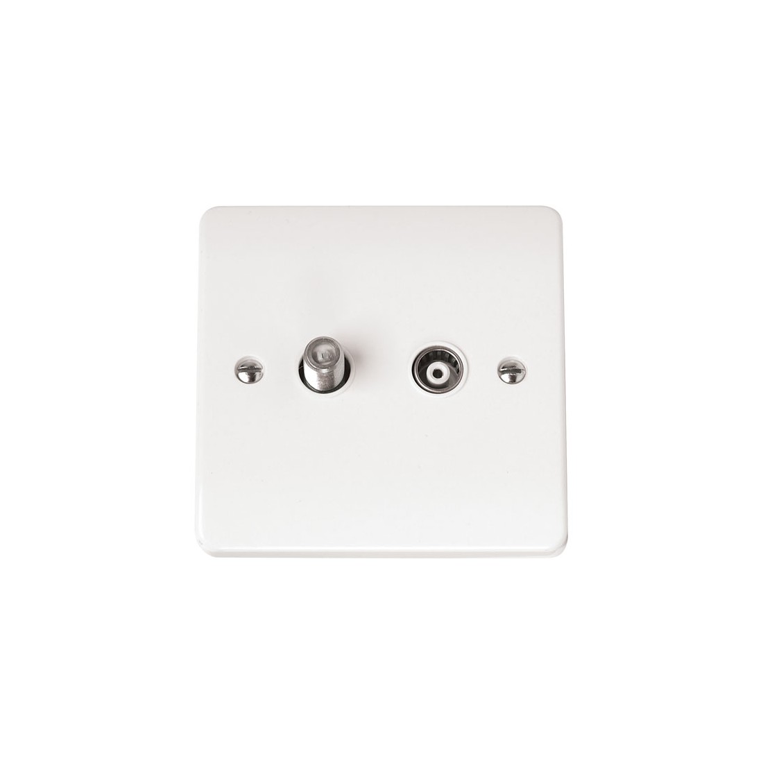 Click CMA157 Mode White Moulded Twin Isolated Co-Axial TV Socket & F-Type Satellite Sockets