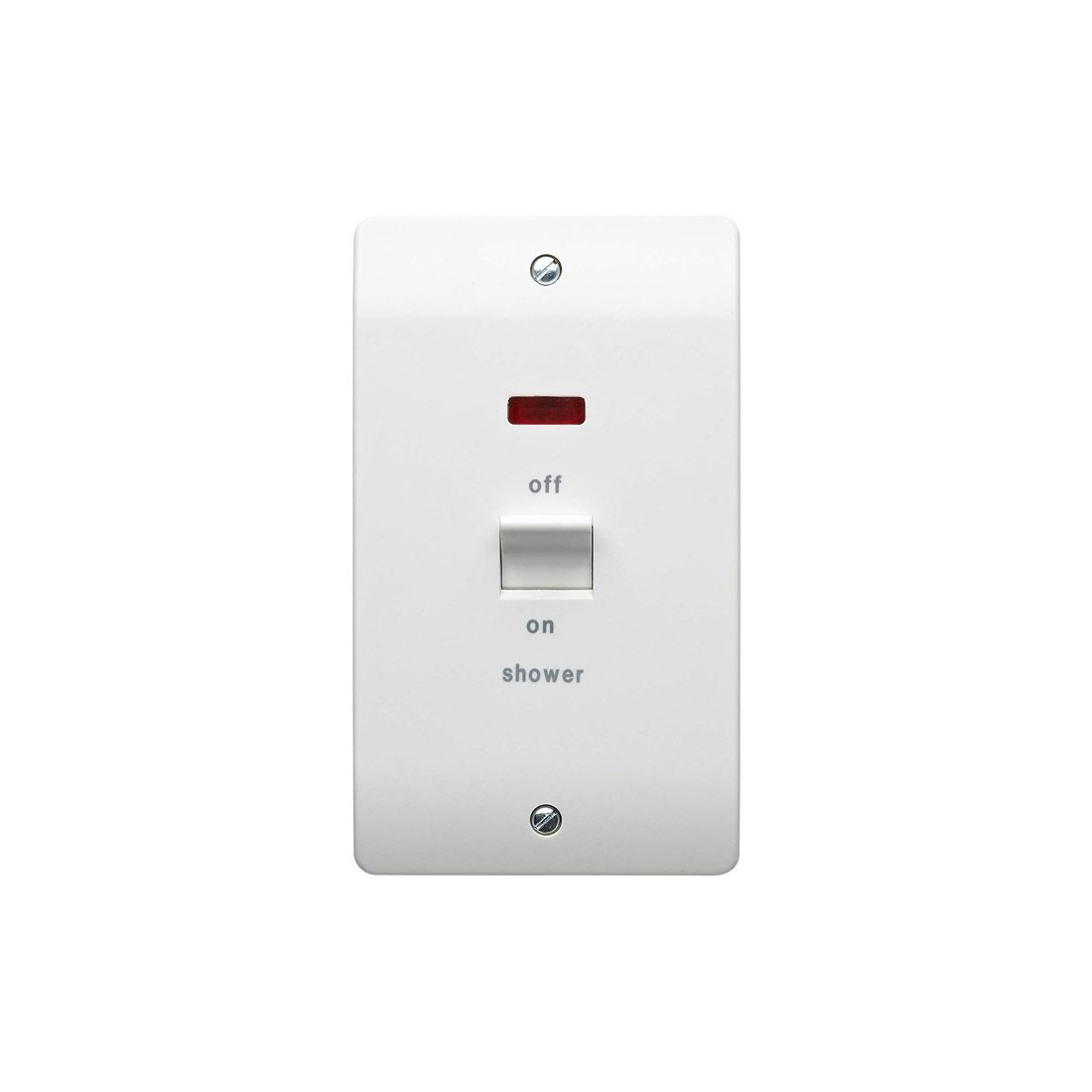 MK Electric K5215SHWHI Logic Plus White Moulded DP Control Switch With Neon Marked SHOWER On Large 2 Gang Vertical Plate 50A