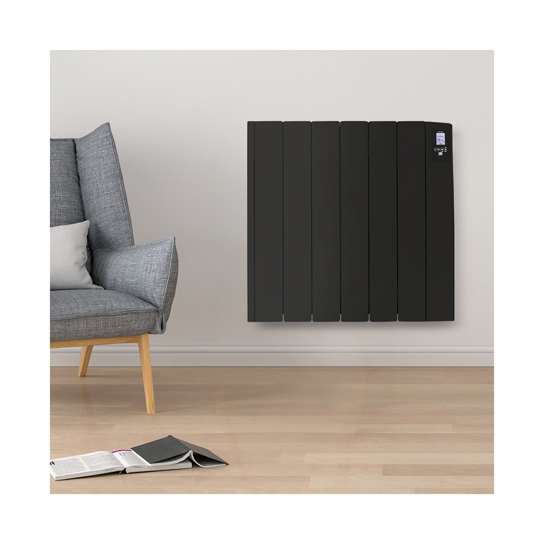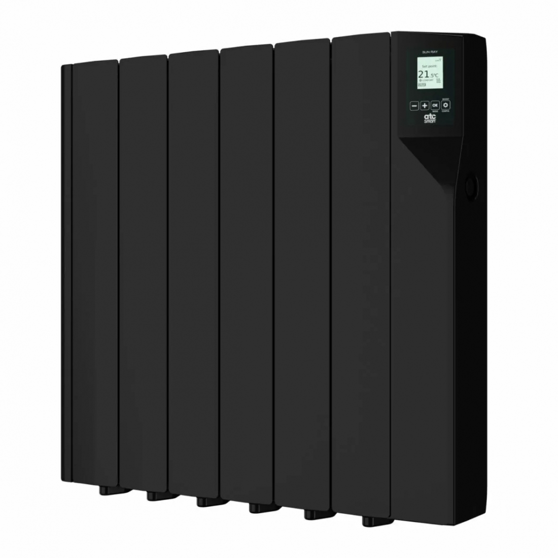 ATC Electrical RF750BL Sun Ray RF Black 750W 6 Element Smart Programmable Electric Radiator (580mm wide) with LCD Control Panel & WiFi Control - Fluid Filled