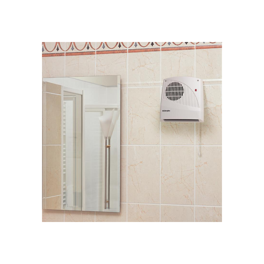 The Dimplex FX20VE is a white double insulated IP22 rated wall mounting downflow fan heater that is a popular choice for delivering instant heat heating for bathrooms and ensuites as well as kitchens.
