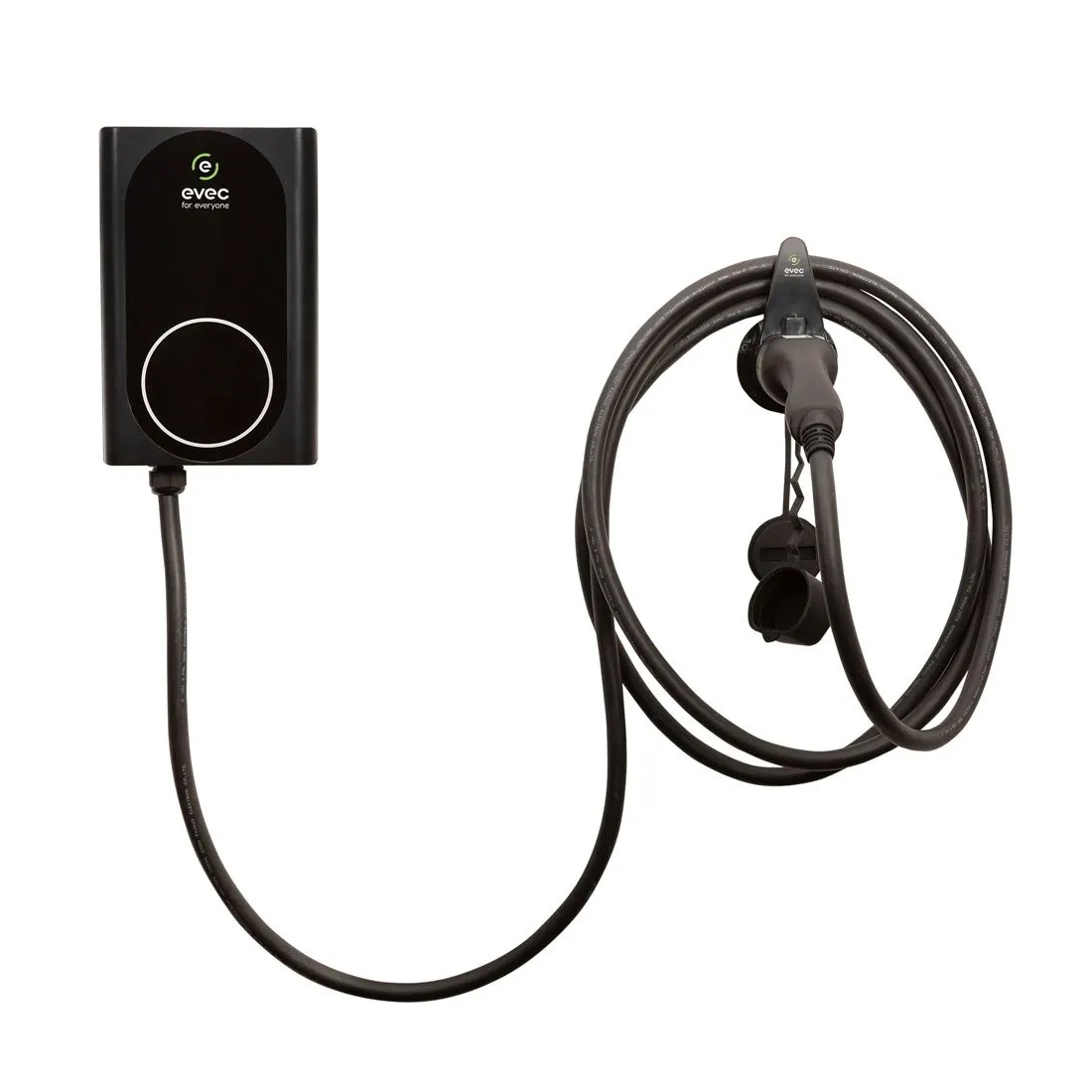 - Evec VEC03 black tethered 7.4kW single phase EV charger