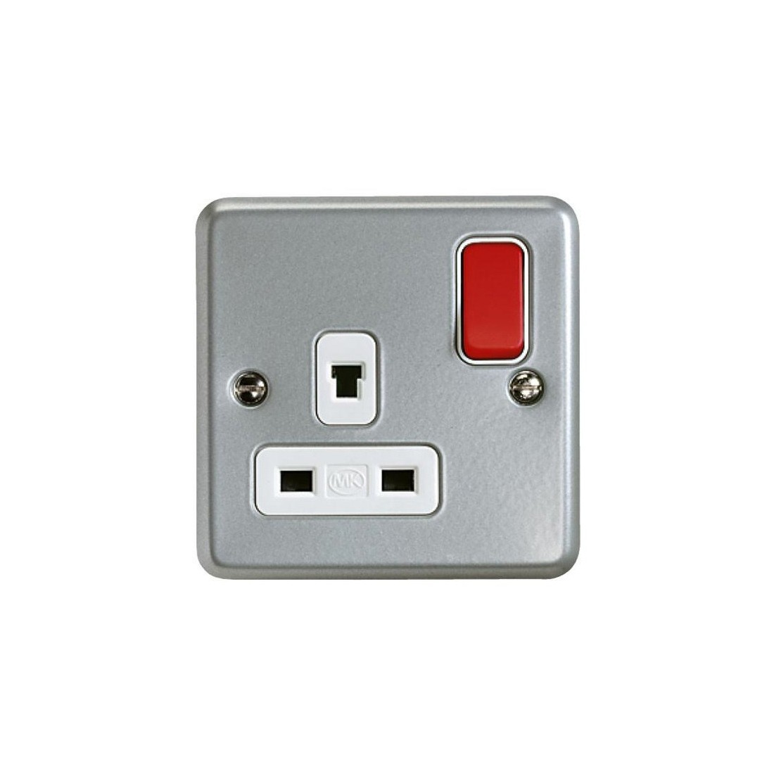MK Electric K1247D6ALM Metalclad Plus Aluminium 1 Gang Switched Clean Earth Socket Red Rocker Non Standard 13A