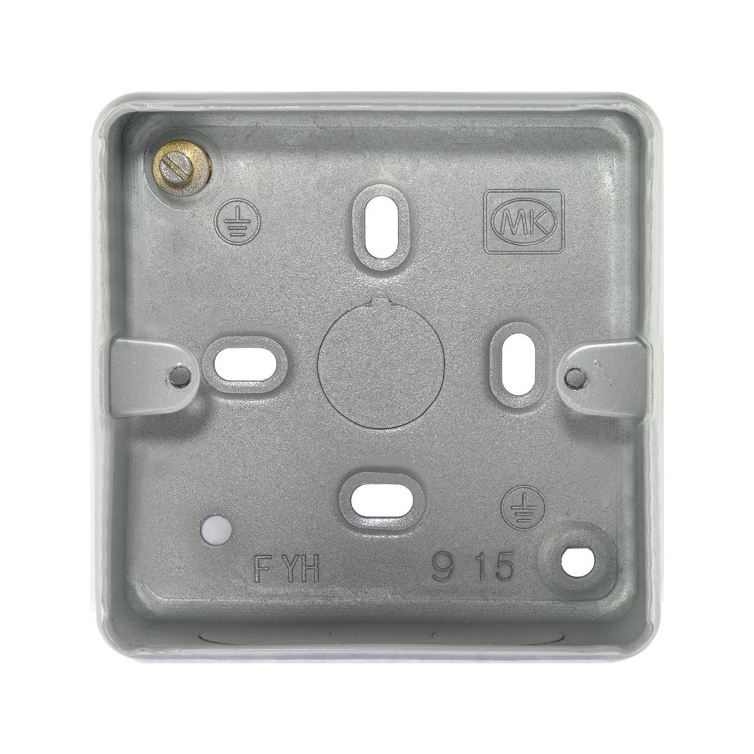 MK Electric K2213ALM Logic Plus Aluminium 1 Gang Surface Box c/w 5 x 20mm Knockouts 86x86x41mm