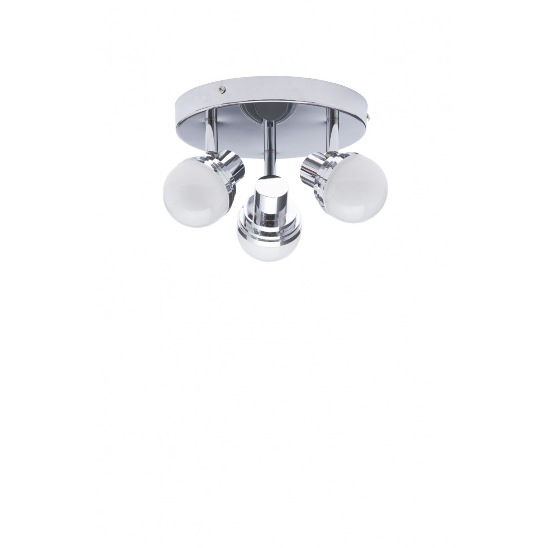 Spa SPA-31733-CHR Milan Chrome Triple Light Plate LED Adjustable Bathroom Spotlight With Warm White 3000K LEDs, 3 x Globe Shaped Opal Glass Shades & Round Mounting Plate IP44 3 x 5W 960Lm 240V Length: 255mm | Width: 290mm | Proj: 120mm