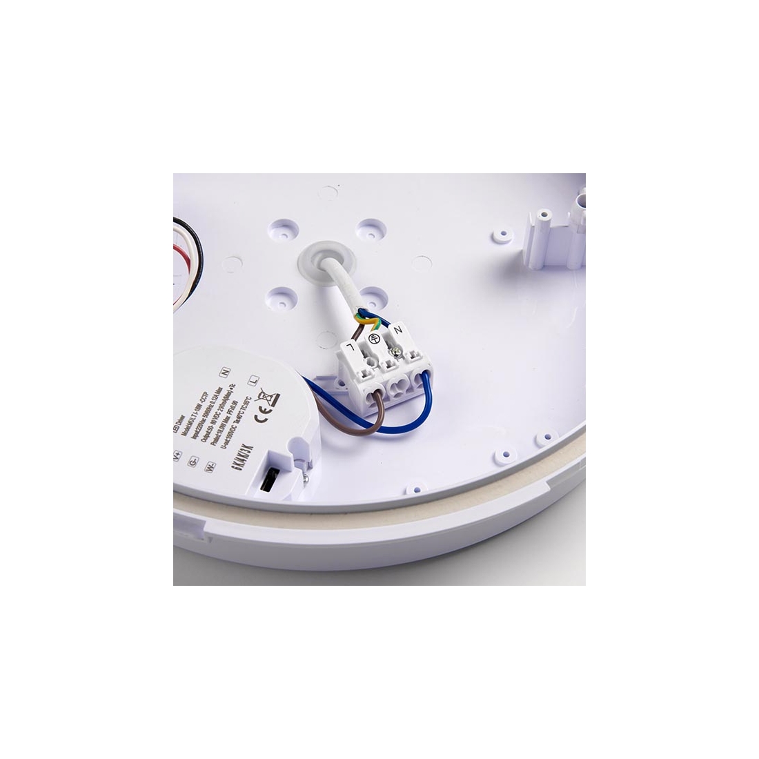 The Saxby Lighting 95541 HeroPRO is a 316mm round IP65 LED bulkhead with selectable wattage, 3CCT and an integrated microwave sensor for smart, motion-activated lighting up to 1800 lumens.