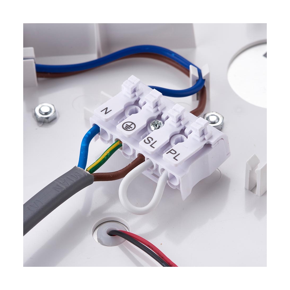 - Clean white finish for modern installations