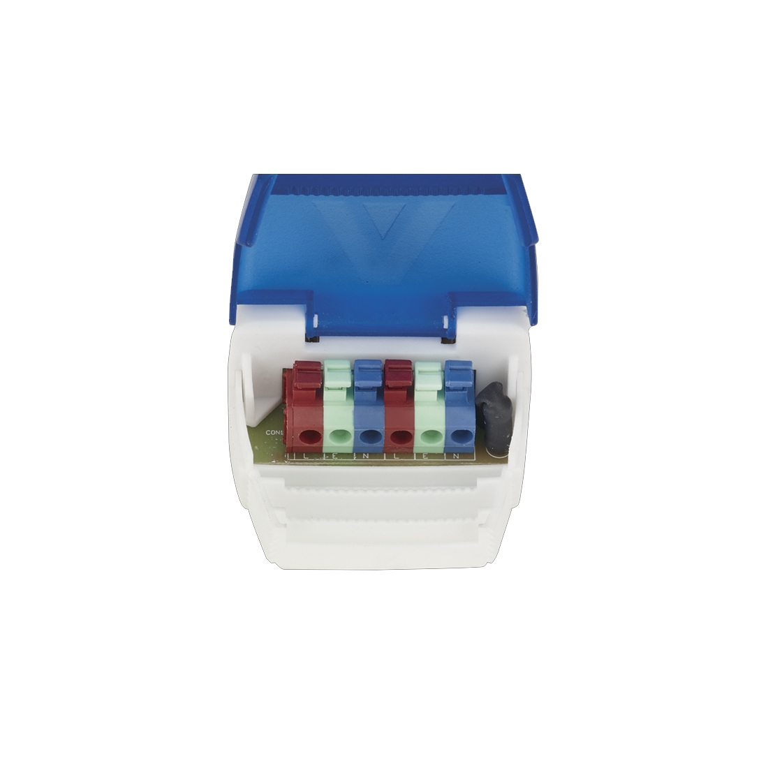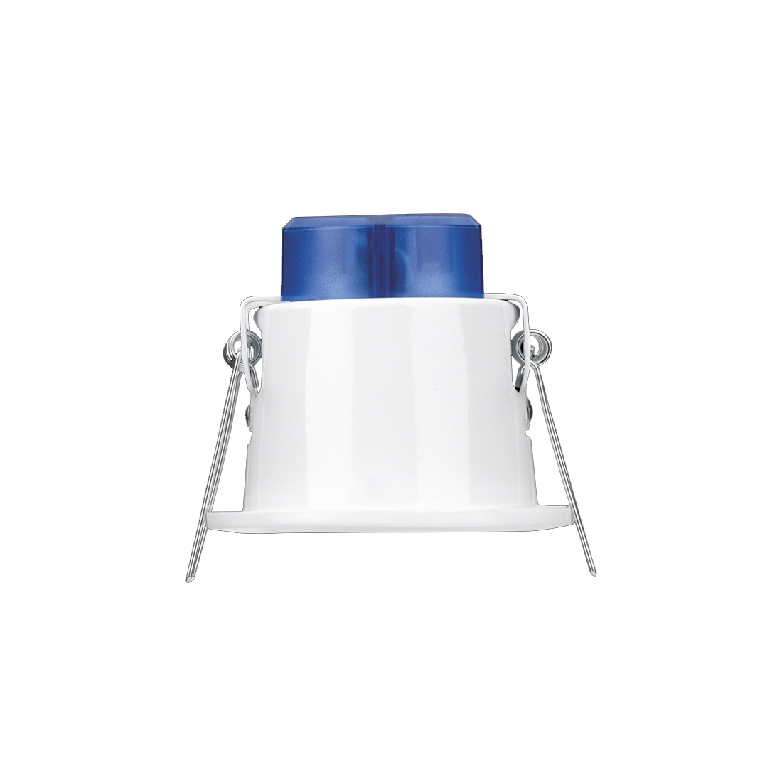 This R6™CWS is Aurora's baffled colour and wattage switchable fire rated downlight, supplied with an AMP connector applied to a remote detachable driver with a loop in/loop out terminal block.