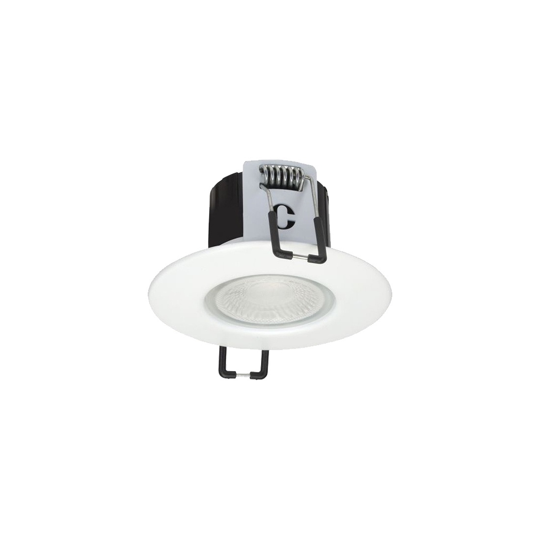 Collingwood Lighting DLT388MW5530-PACK (Pack of 5) H2 Lite Matt White Steel Dimmable Round Fixed LED Fire-Rated Downlight With Warm White 3000K LEDs & Easy-Fit Connector IP65 4.3W 460Lm 240V Dia Ø: 90mm | Recess Depth: 68mm | Cut-Out Ø: 64-72mm