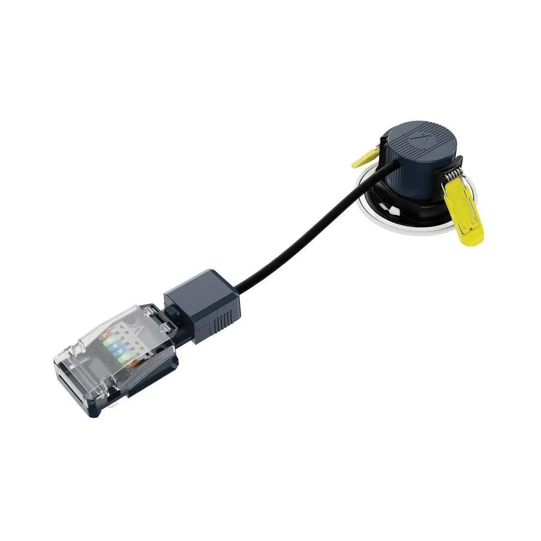 - A 2-part connector provides first fix wiring whilst the luminaire is detached from the connector