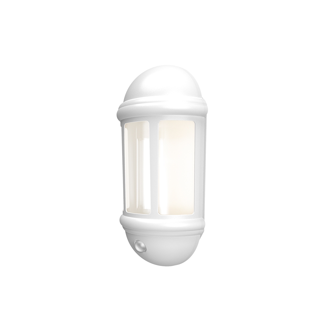 Ansell Lighting ALHLLED/PC/WH Latina White All Polycarbonate LED Half Lantern With Warm White LEDs, Photocell & Tinted Lens IP65 8W 400Lm 240V Height: 344mm | Width: 175mm | Proj: 95mm