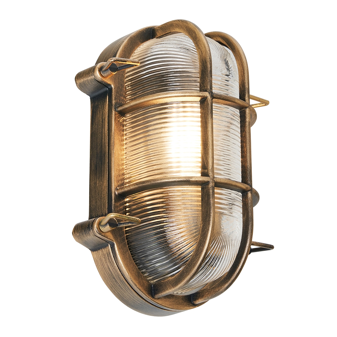 The Forum Lighting ZN-44230-GLD Davey Gold Caged Oval GLS Wall Light is a stylish and robust wall fitting that blends industrial character with practical everyday performance. Featuring an oval bulkhead-inspired design with a protective cage surround, this light is perfect for adding a decorative yet durable touch to bathrooms, hallways, utility rooms and covered outdoor areas.
