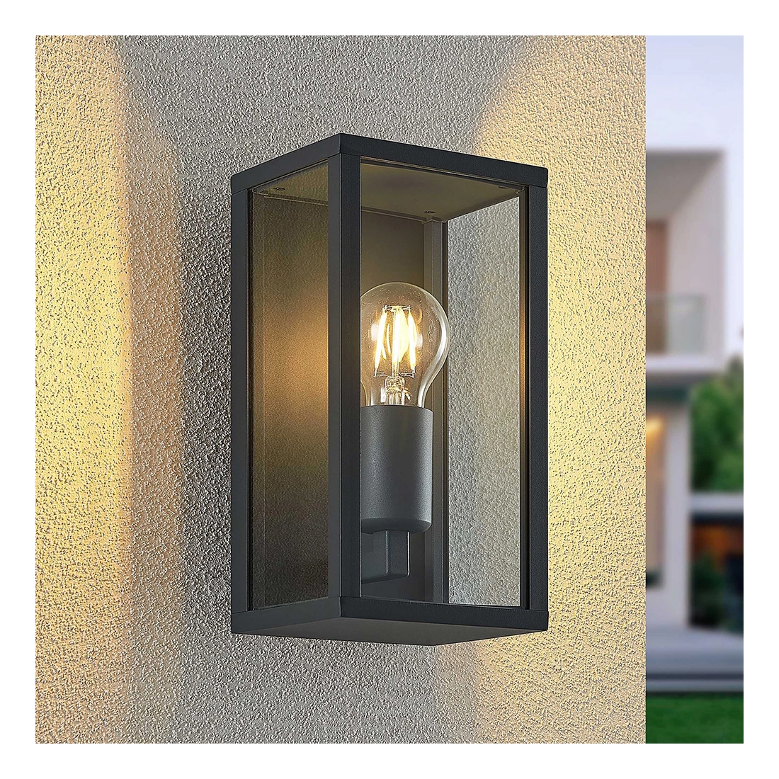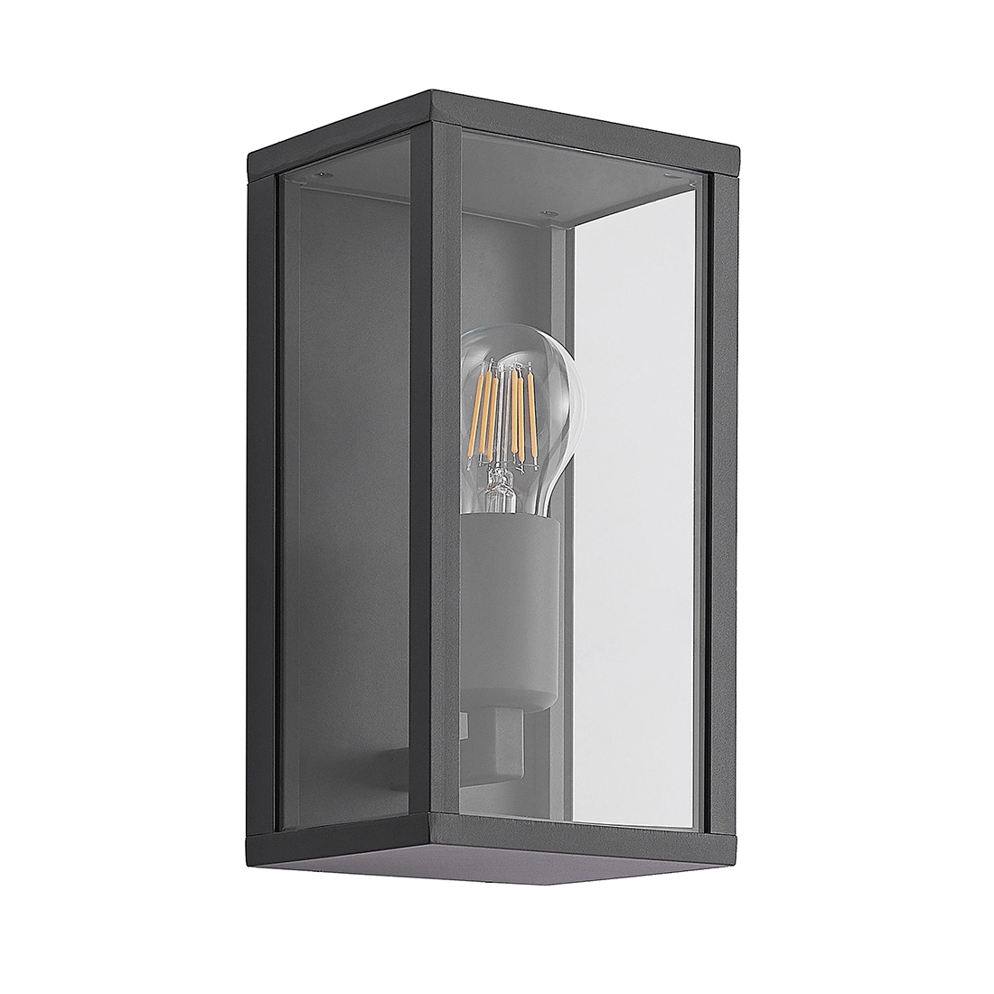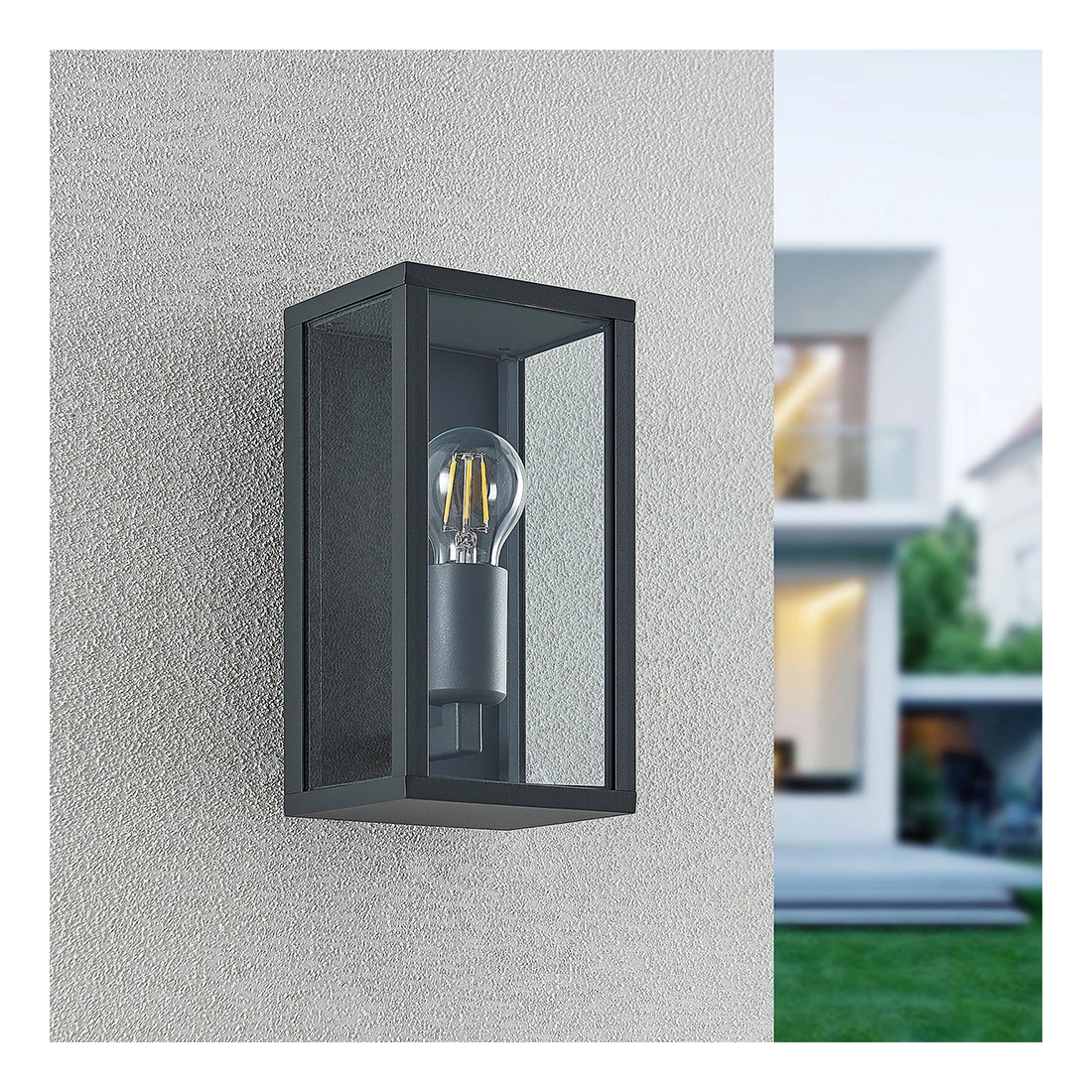 The Forum ZN-20944-ANTH Minerva is an anthracite IP44 rectangular wall light with clear glass panels, offering modern architectural styling and designed for GLS lamps.