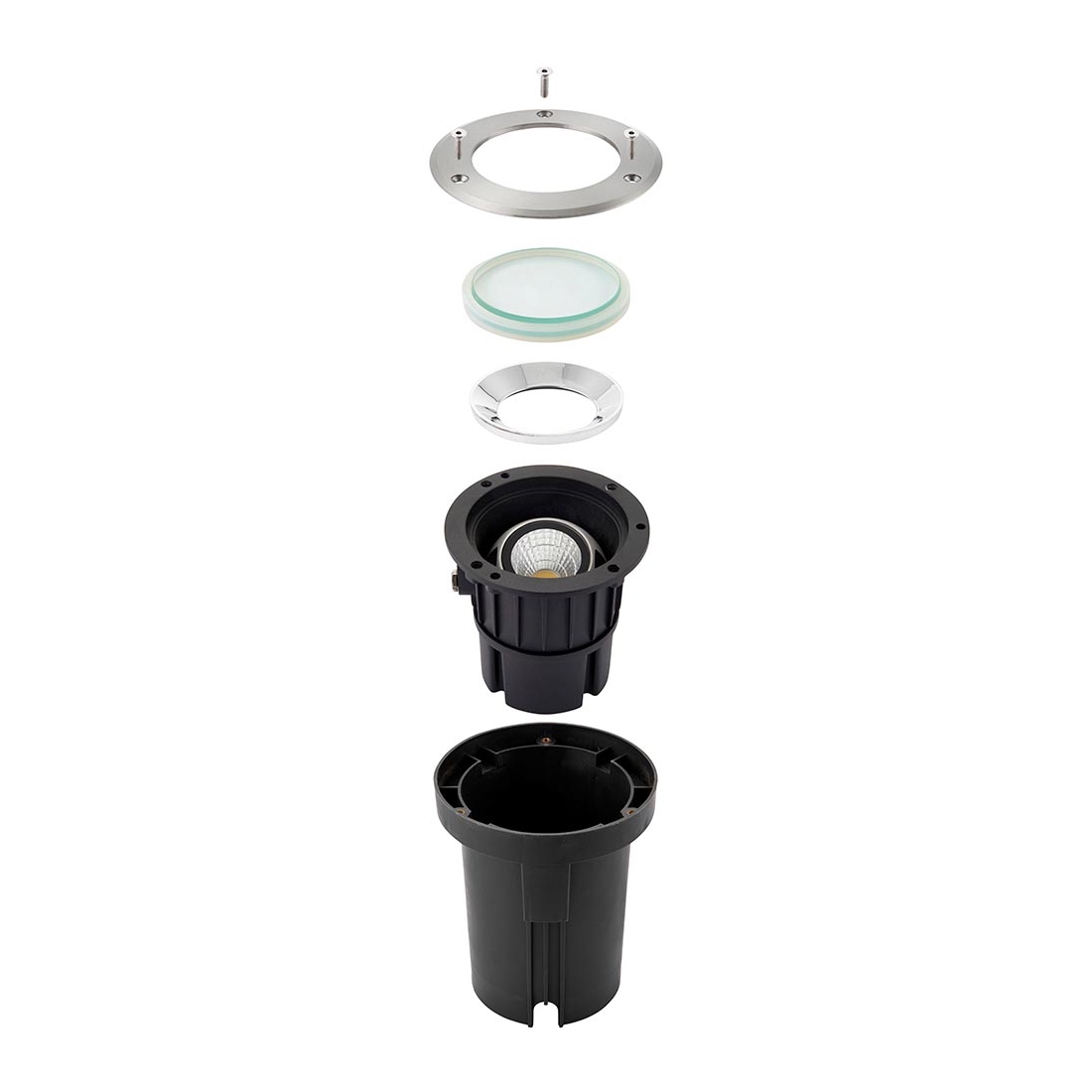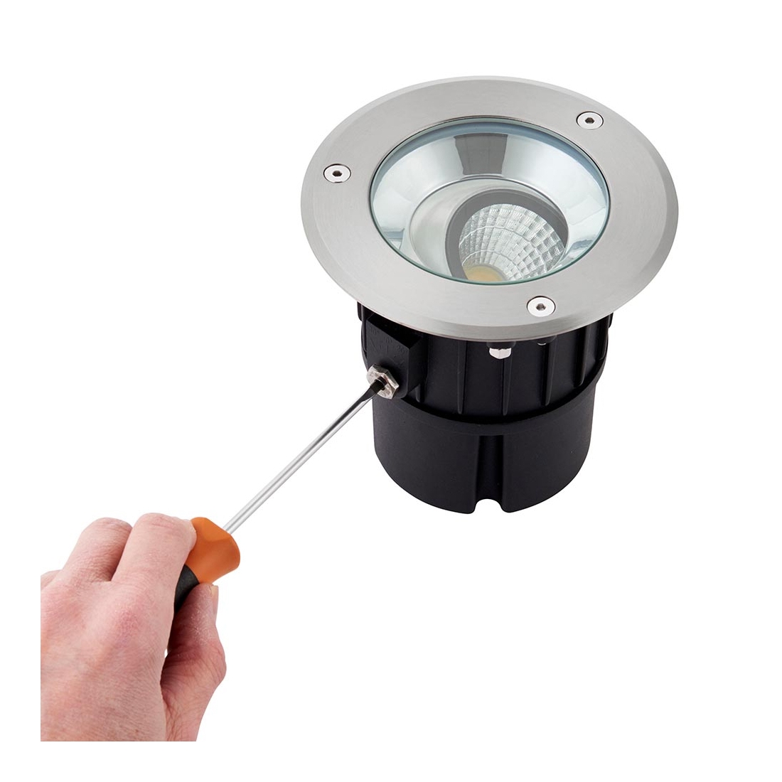 Designed as a driveover-rated ground light, it is suitable for areas where vehicles may pass over. The adjustable LED module allows directional lighting to highlight architectural details, trees, walls or walkways, while the larger 141mm round format provides a clean and professional flush finish in paving or decking.