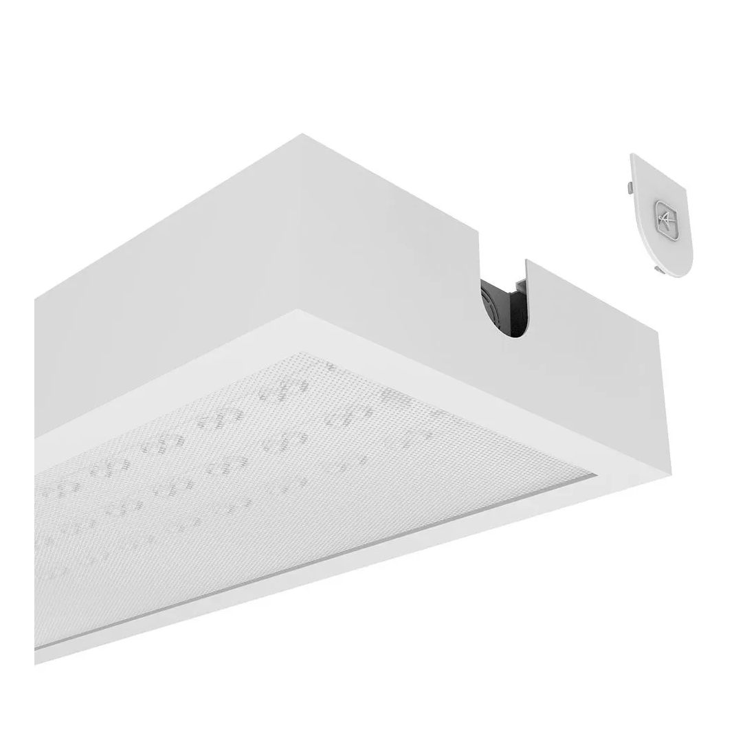 The microprism diffuser enhances photometric performance for smooth, even illumination, while the robust steel construction ensures durability. The luminaire supports both surface mounting and suspension, and its intelligent push-up, clip-in body design simplifies installation.