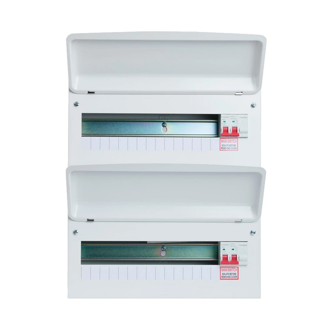 Fusebox F3032MDT F3 Seriews White 32 (16/16) Way Dual Tariff Consumer Unit With Dual 100A Switch Isolators