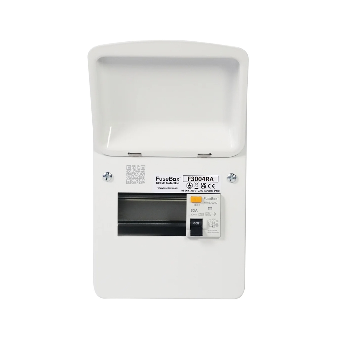 Fusebox F3004RA F3 Series White 4 Way RCD Isolator Consumer Unit With 63A 30mA Type A RCD Isolator