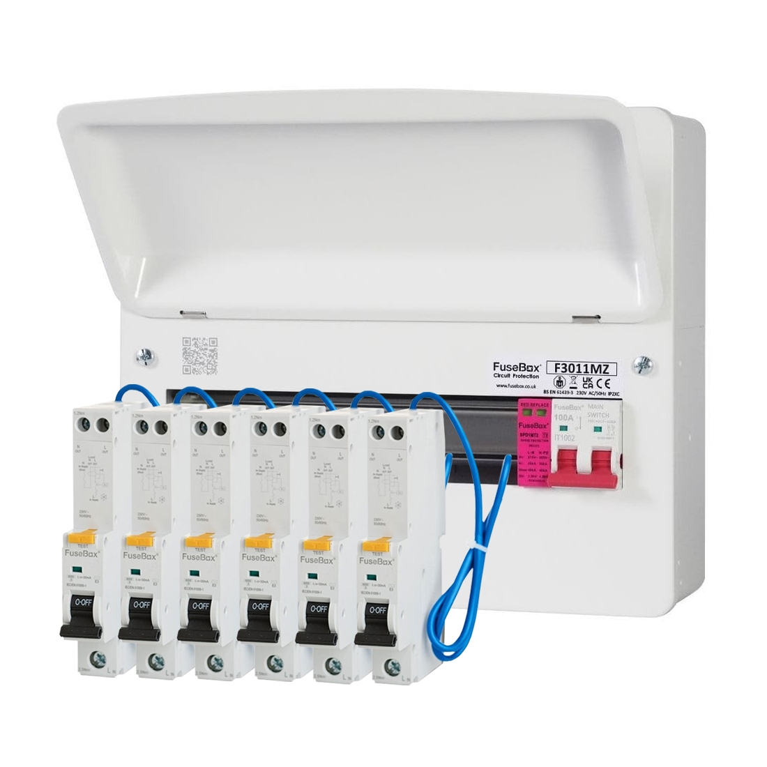 Fusebox F3011MZ-PP 11 Way Pre-Populated Surge Protected Switch Isolator Consumer Unit With 2x6A + 1x16A + 3x32A RCBOs & 5 Blank Modules