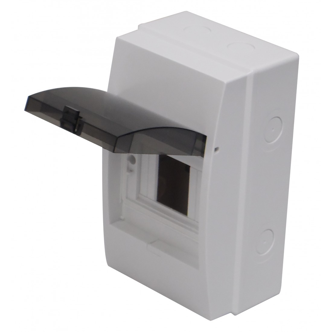 Europa Components ECW4 White ABS 4 Module Insulated DIN-Rail Distribution Enclosure With Smoked Polycarbonate Lid IP65 Height: 215mm | Width: 125mm | Depth: 100mm