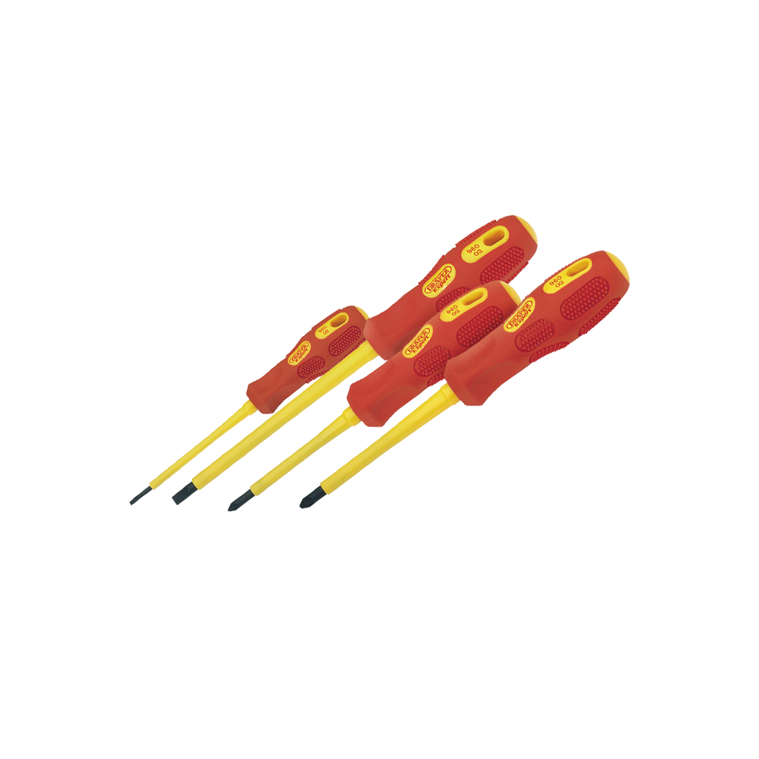 The Draper 960 Series 69233 is a VDE insulated 4 piece screwdriver set selected with the professional electrician in mind.